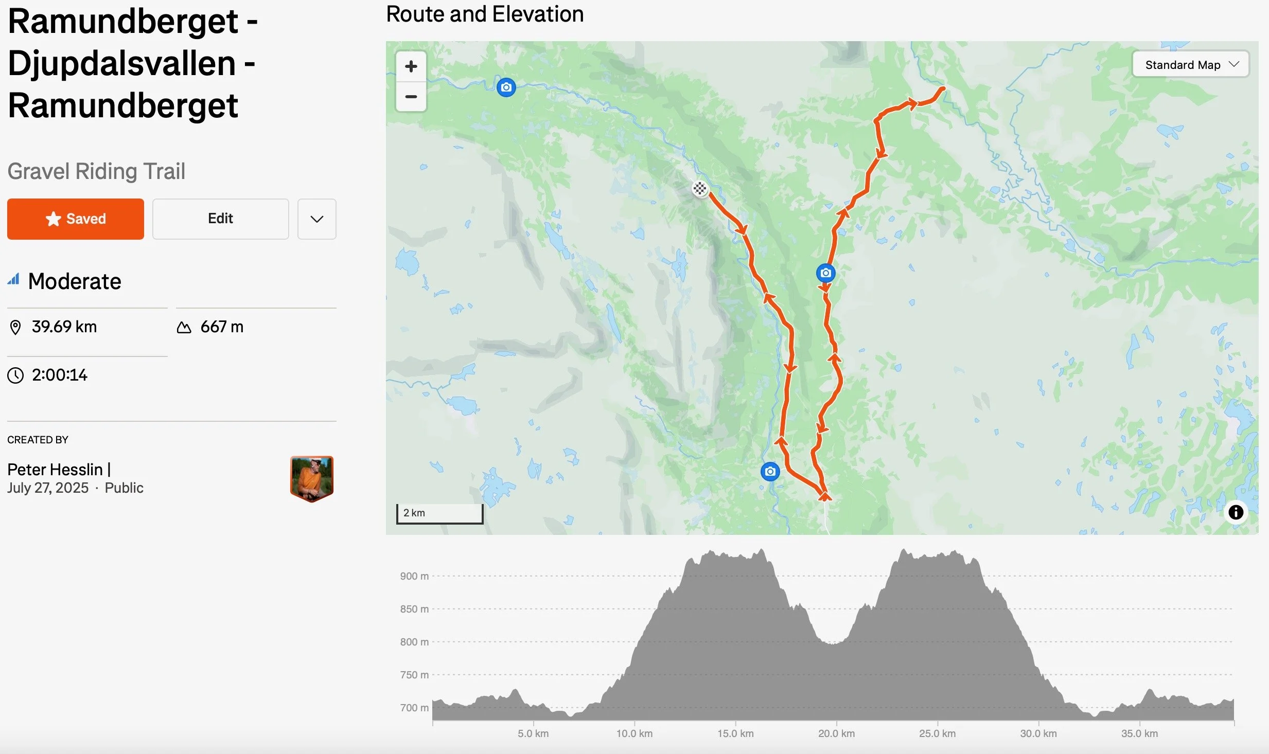 After breakfast, we head down toward Bruksvallarna, then branch off towards Djupdalsvallen along beautiful gravel roads and hilly terrain with plenty of elevation. Coffee will be served before we return to Ramundberget, where we’ll be back before lunch. Lighter sandwiches and showers will be available before departure.